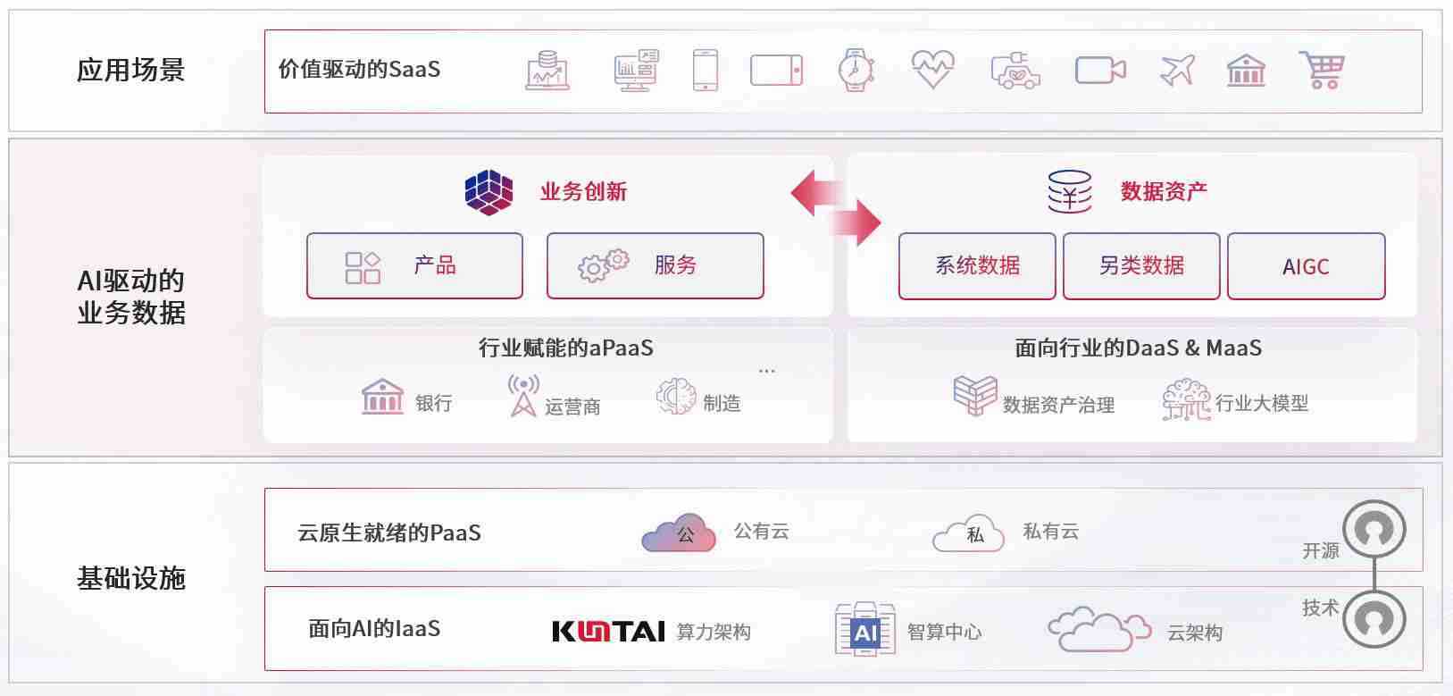 数字时代,,,,围绕企业数字化转型的关键要素,,808钱包数码开创性的提出数云融合战略和技术体系框架,,,,着力在云原生、、、、数字原生、、、AI原生和信创产业上架构产品和服务能力,,,,为处在不同数字化转型阶段的快消零售、、汽车、、、金融、、、医疗、、政企、、、、教育、、、运营商等行业客户提供泛在的敏捷IT能力和融合的数据驱动能力,,,构建跨界融合创新的数字业务场景和新业务模式,,,助力企业级客户建立面向未来的核心能力和竞争优势,,,全面推动社会的数字化、、智能化转型升级。。。